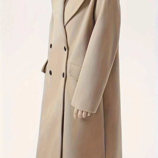 Double Breasted Lapel Trench Coat, Elegant Solid Long Sleeve Outerwear
